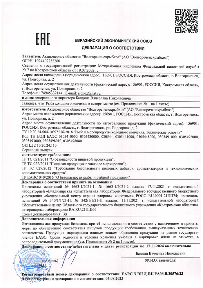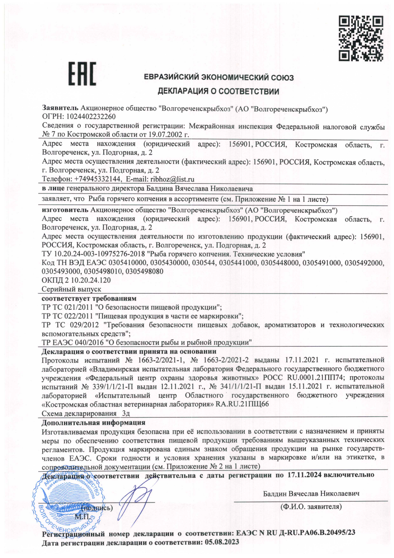 СЕРТИФИКАТЫ НА ПРОДУКЦИЮ: